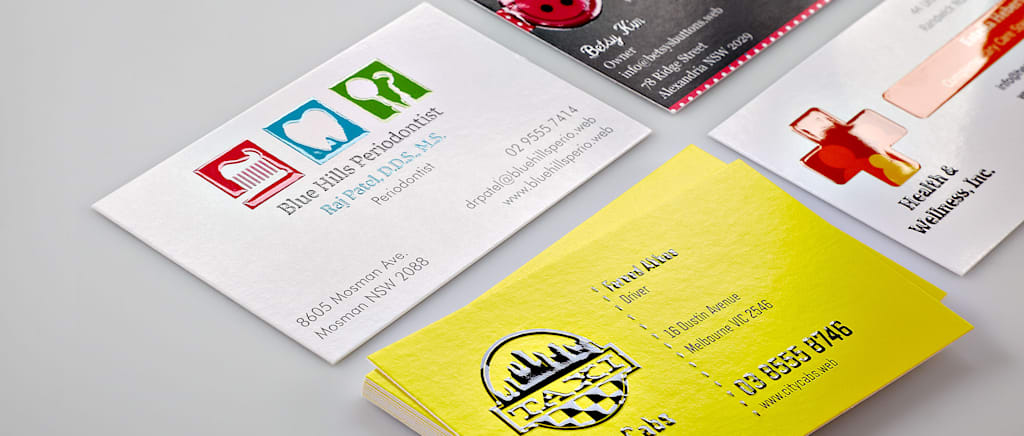 Select colours and design elements that are associated with your business area to make your card easy to recognise and representative of the products or services you provide. If you sell luxury products like jewellery or evening wear, you might represent this with a foil detail. Or if you specialise in a style of stone masonry or carpentry, you may include a photo of your work to showcase your area of expertise. The choice of finish and paper stock can let your customers know whether your company is the most affordable solution around – or that you offer upscale services. Your choice of paper stock can also suggest whether you’re a fresh and fun new venture or a well-established business that’s been around for decades.