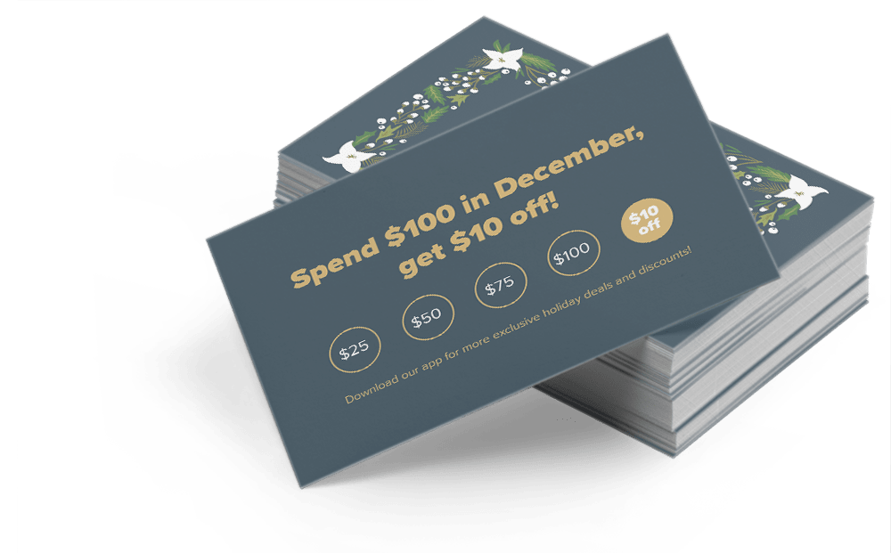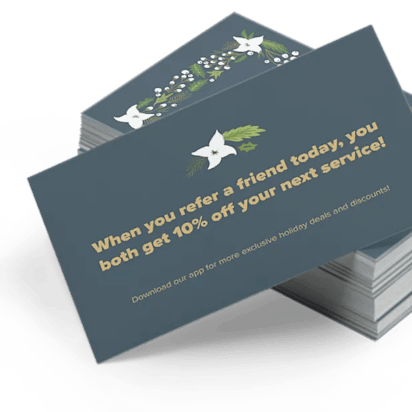 Business cards can be used for so much more than, well, business cards. You can also use business cards as referral tools. Generate some word-of-mouth marketing by placing a business card with a special refer-a-friend perk in each order. Whether you offer free delivery or a discount on their next purchase, you’re creating a thoughtful connection with your customer…and enticing them to come back. Don’t forget to show your appreciation for their loyalty by thanking them for their business as well.
