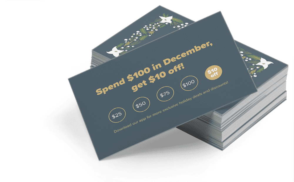 Business cards can be used for so much more than, well, business cards. You can also use business cards as referral tools. Generate some word-of-mouth marketing by placing a business card with a special refer-a-friend perk in each order. Whether you offer free delivery or a discount on their next purchase, you’re creating a thoughtful connection with your customer…and enticing them to come back. Don’t forget to show your appreciation for their loyalty by thanking them for their business as well.