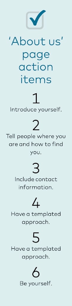 An ‘about us’ section is a great way to help people find your website – do some SEO research to work relevant keywords into your story.