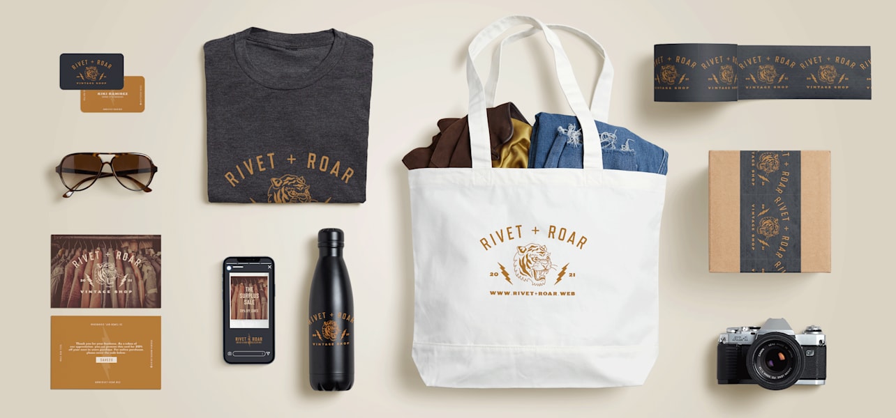 As a small business owner, you wear a lot of hats – and you don’t need to be a seasoned designer to get great design for your business. Take RIVET & ROAR, for example. This vintage clothing brand was able to customise an existing template to create a logo that works for them and reflects their business name and identity.