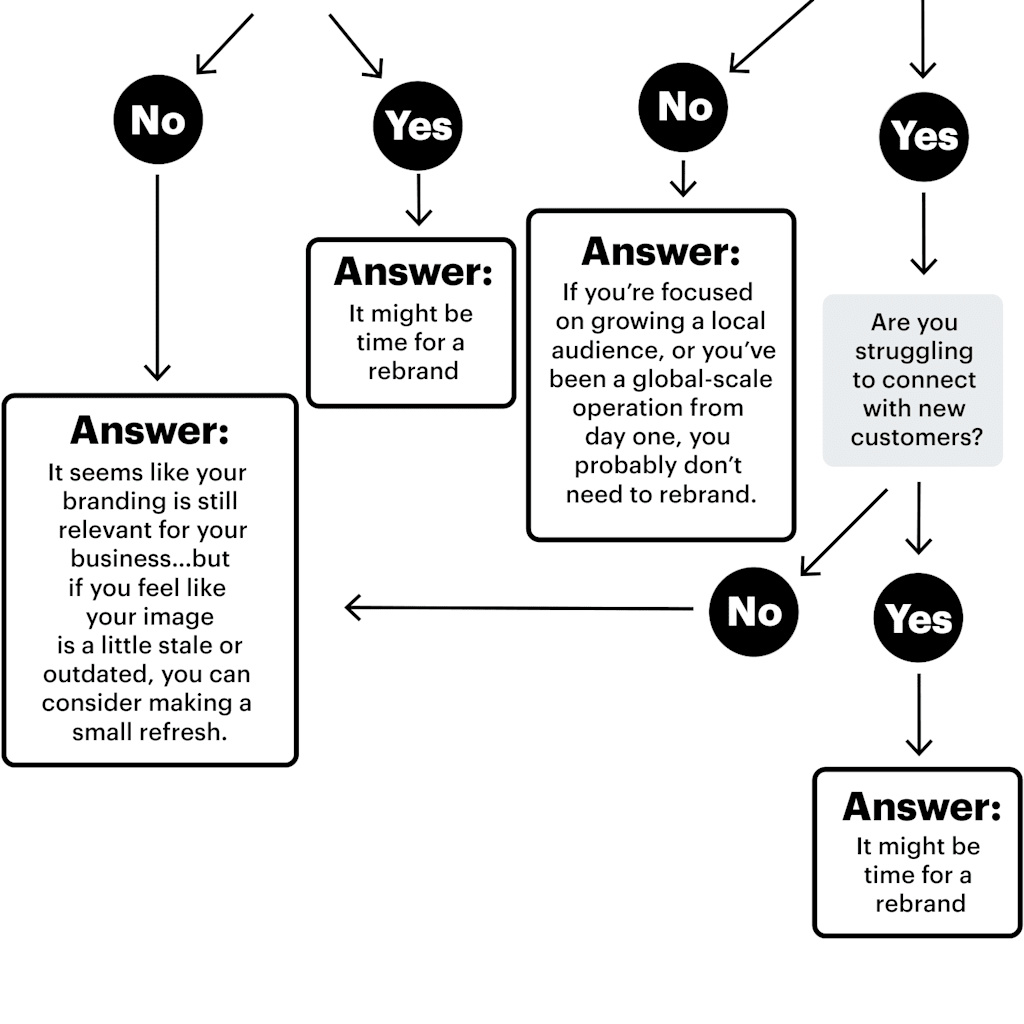 If your line of products and services has changed dramatically, it could be time for a complete rebrand. But if you simply want to update the look of your brand, a straightforward refresh could be an easier solution. Here, check out 6 reasons to rebrand or refresh, then use the decision tree at the bottom of the page to evaluate your business and decide your best next step.
