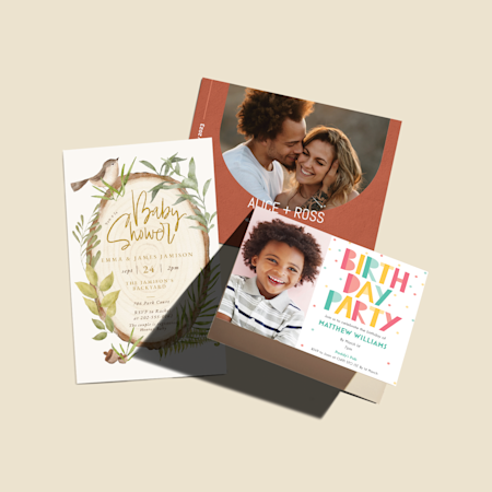 We have custom invitations, announcements and photo cards for events of all kinds. That includes life’s biggest milestones — weddings, births, major birthdays — as well as fun occasions like children’s birthday parties and housewarmings.