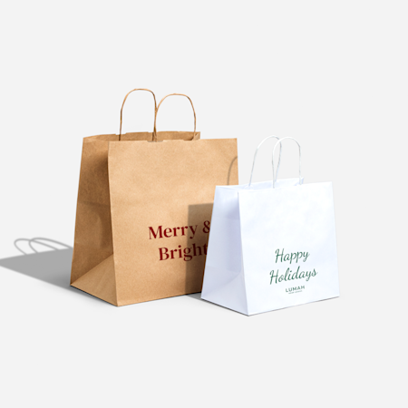 Ready to design your custom holiday packaging? It’s easy with our wide selection of readymade festive templates. You could even upload your own design. Then, add your logo, text and business info in our design studio. We’ll professionally print it and deliver it to your door. If you need help along the way, our design experts are one call, chat or email away to help bring your Christmas packaging ideas to life.