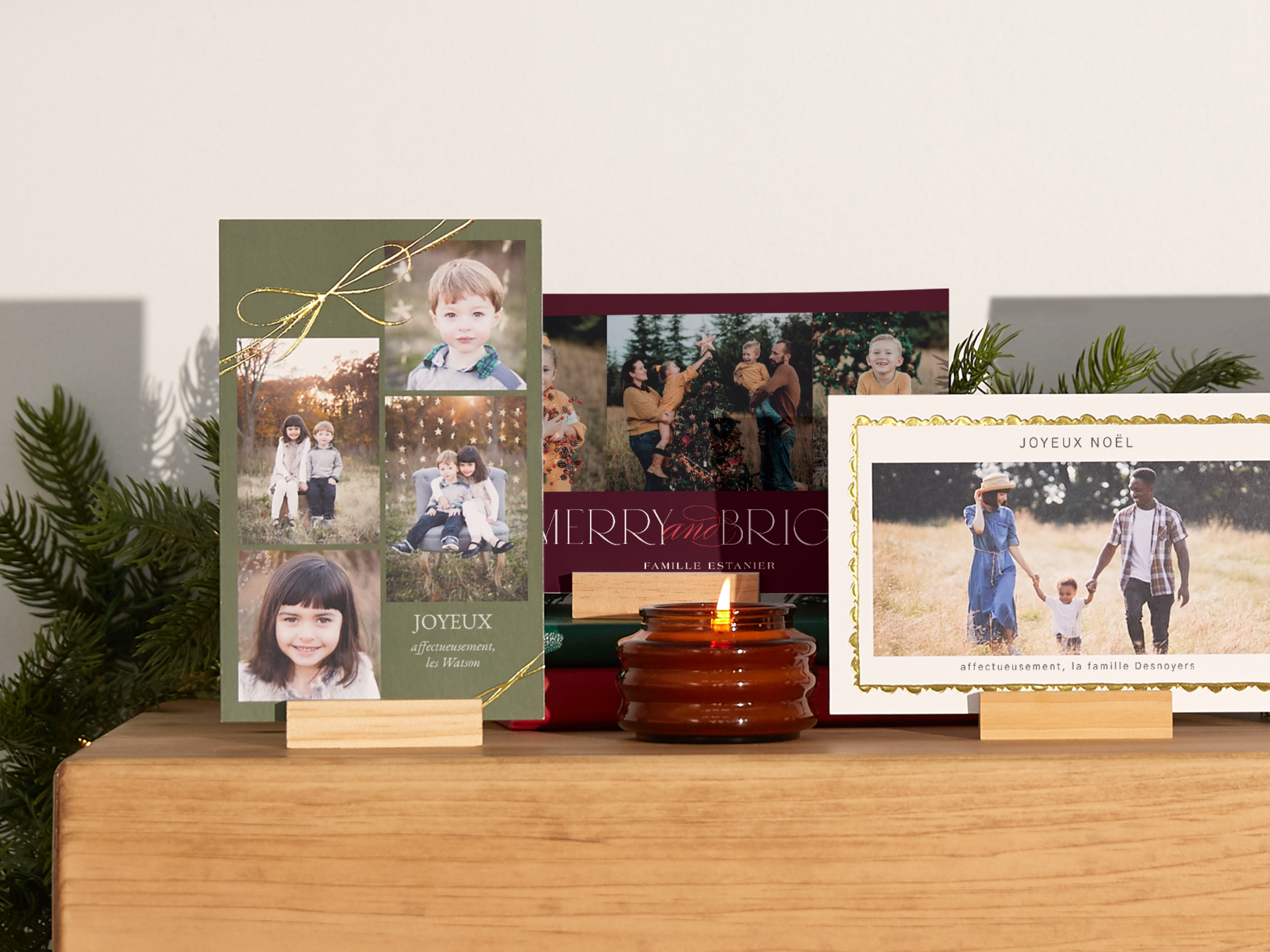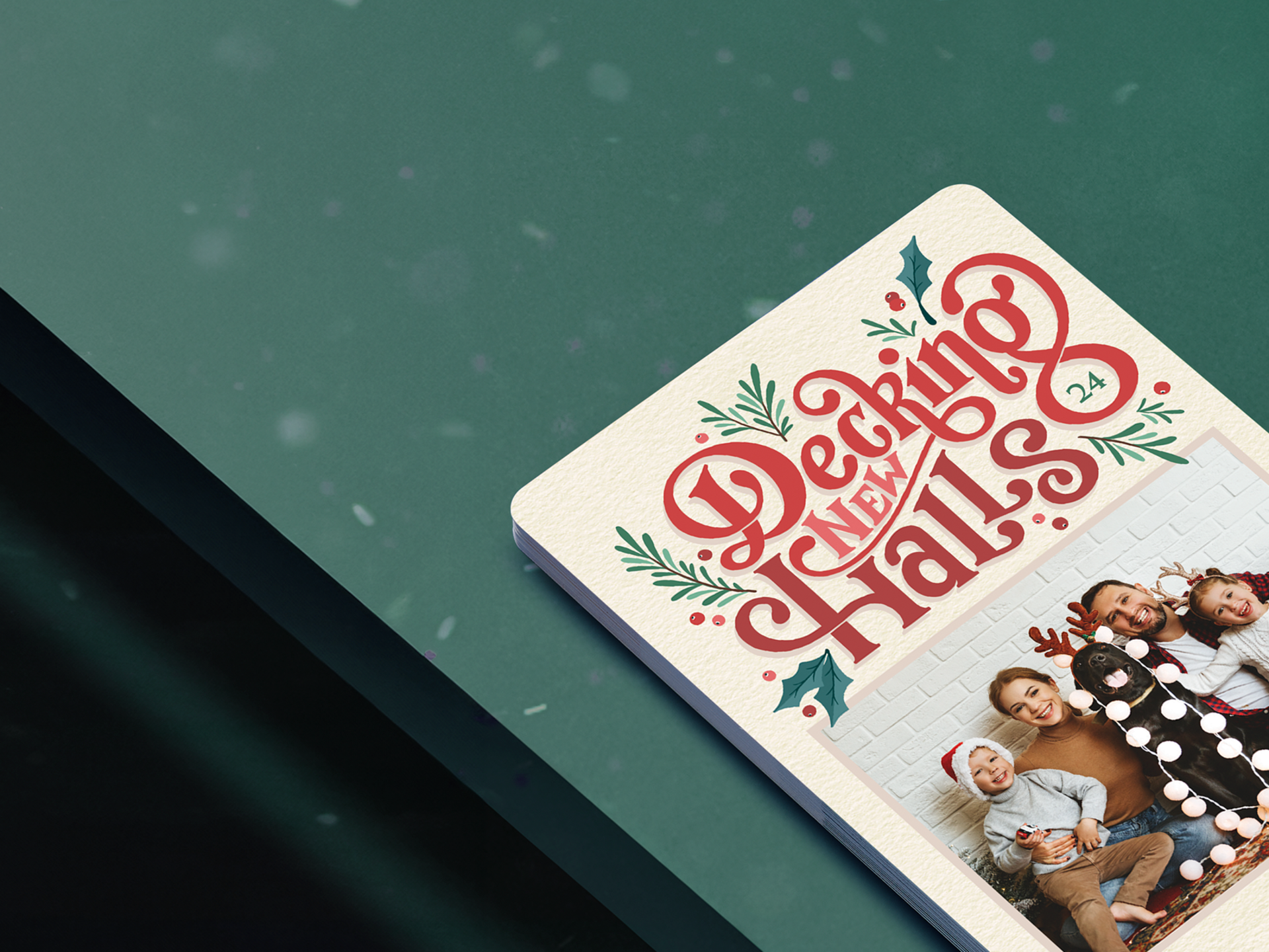 Break out the camera roll – it’s time for your annual Christmas cards. We’re making the tradition fun with Christmas card templates that aren’t just beautiful, but are also easy to personalise. Simply browse our vast selection of designs to find styles for any taste. Whether you love rustic scenes or a minimalist look, you’ll discover endless options. After selecting one of our Christmas card templates, it just takes a few minutes to customise with your photos or message. You can even dress up your photo Christmas cards with festive touches like matching envelopes or return address labels (which, ahem, also happen to be great time-savers). Then, we’ll take care of the rest. We’ll print your creations and ship them to your door. And you? You can cross “create gorgeous cards” off your to-do list.