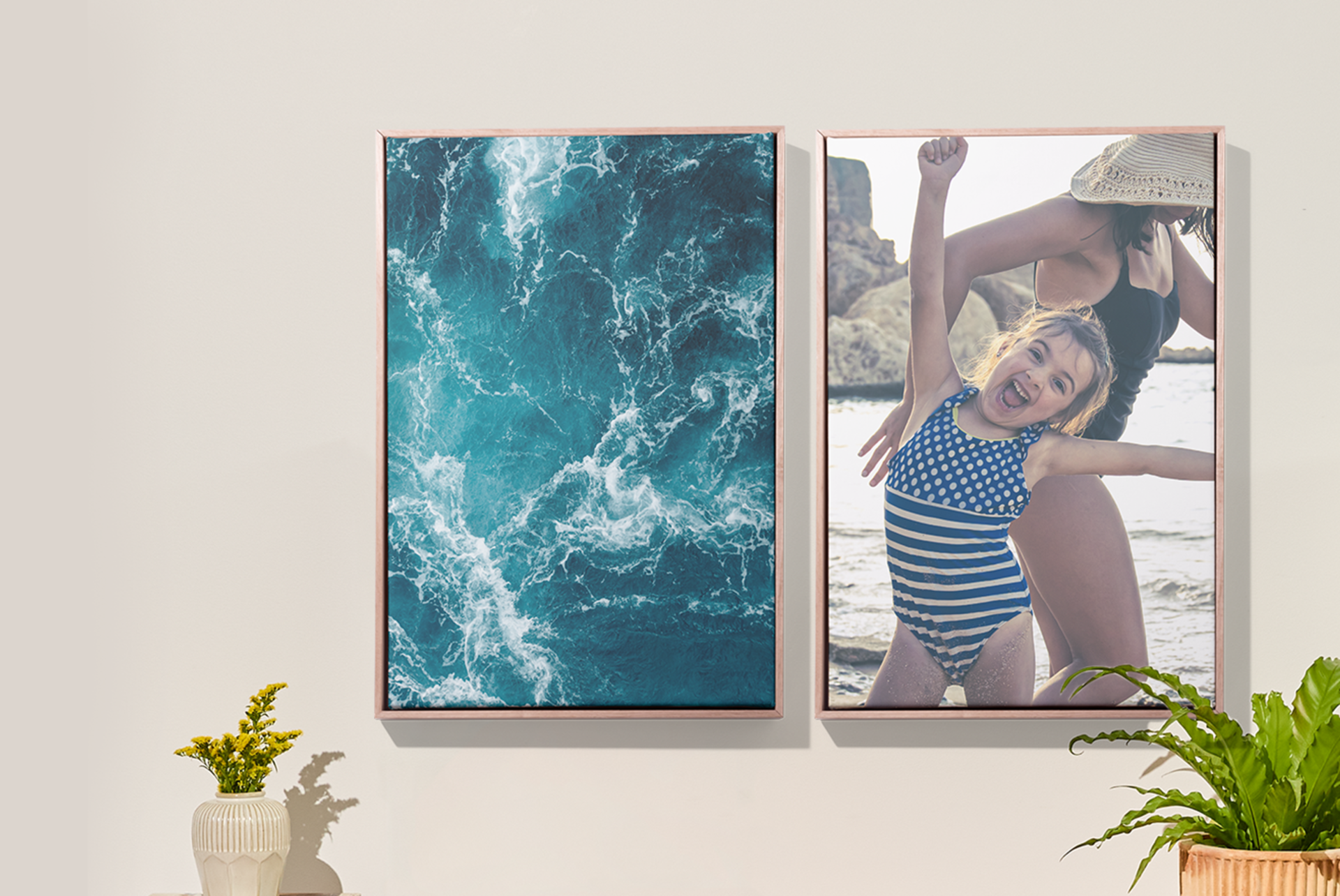 No, framing your canvas prints is all a matter of personal preference and both options arrive ready to hang. Our canvas-only designs are a budget-friendly option and look classic on any wall. Alternatively, you can enhance canvas prints by adding a modern floating frame that’s made from Australian Oak and available in 3 different colours; black, white, and natural oak.