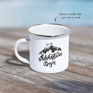 Our camping mugs come in a classic white colour and are crafted from enamel. Thanks to wraparound printing, you can feature a single design or text that makes your camping mug extra special. From photos to phrases, add a personal touch to your design to create a mug that’s uniquely yours.
