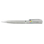 Elevate your writing experience with this custom metal ballpoint, featuring a matte brushed silver finish and chrome details. Ideal for corporate events or as a sophisticated personal gift, the elegant scriptura clip and quality ink refill ensure a smooth, lasting impression. It’s easy to customise — add your logo, message or info using our intuitive studio. Need a hand? Our design experts are here to help bring your ideas to life.