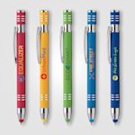 Spice up your marketing campaign with the customisable Soft Touch Stylus Tip Pen. The glossy chrome trim offers an upscale look and makes this pen a sophisticated giveaway. On top of that, the built-in stylus tip facilitates swiping on tablets and smartphones and keeps your touchscreen devices smudge-free. Whether it’s for promoting your company at trade shows or corporate events, your customers will love receiving this personalised writing instrument. Complete with your final touches – your logo and contact information – and keep your brand top of mind. Our interactive studio is easy to use, but if you need further assistance, our design experts are always here to help you create what you have in mind.