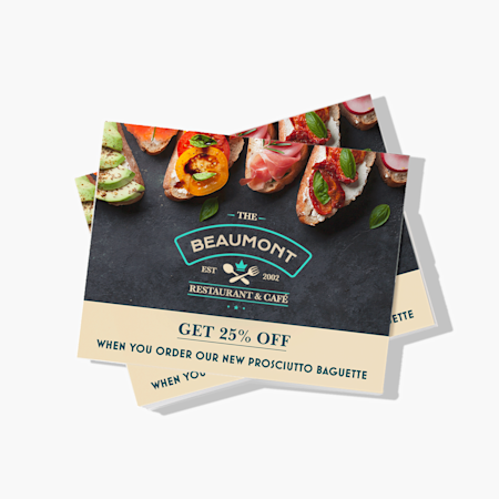 To get started, choose the hospitality marketing materials you need. Then, browse our gallery of easy-to-edit templates or upload your own design. Once you’ve added your custom touches, we’ll take care of the rest. Your order will arrive looking crisp, professional and ready to inspire their cravings.